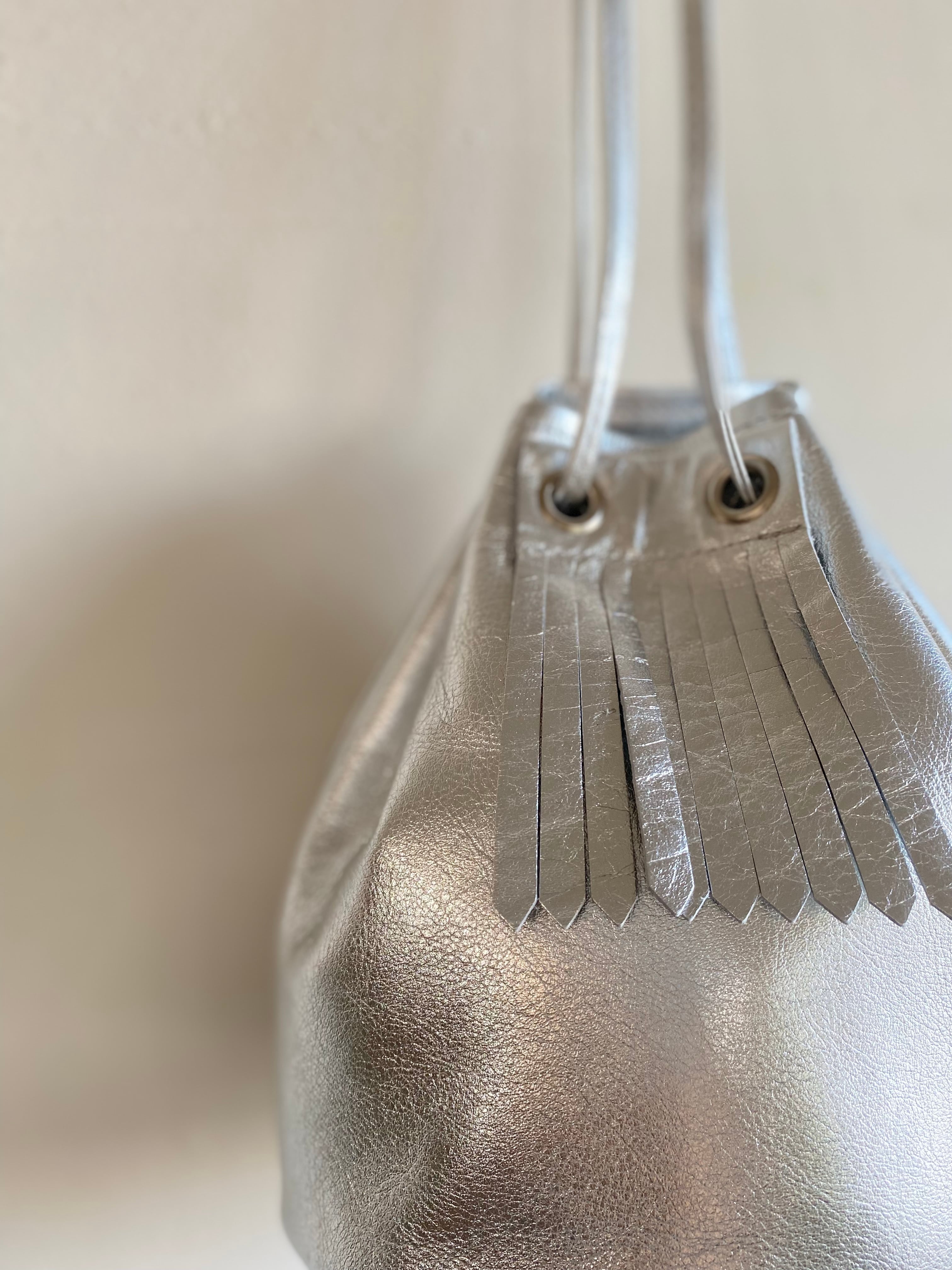 シンプルな形状故に、さりげなくコーディネートのアクセントになる素敵な巾着BAGです