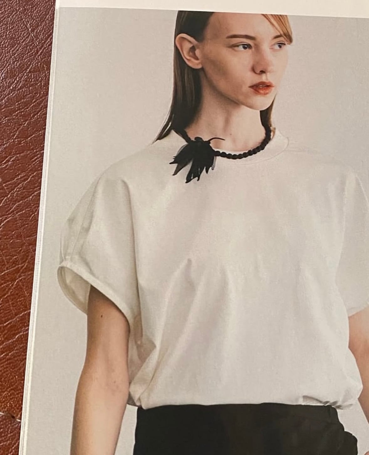 単色なようで何色かに染め分けを行い組み合わせることで、色味に奥深さを出しています。シアー感ある素材感で立体的な奥行きも生まれます。
