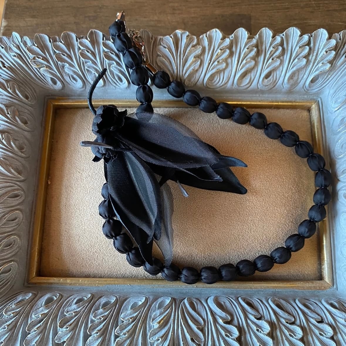 細かい花びらのパーツをいくつも重ねて、丁寧に作られたブローチ+necklaceコンビネーションアクセサリー