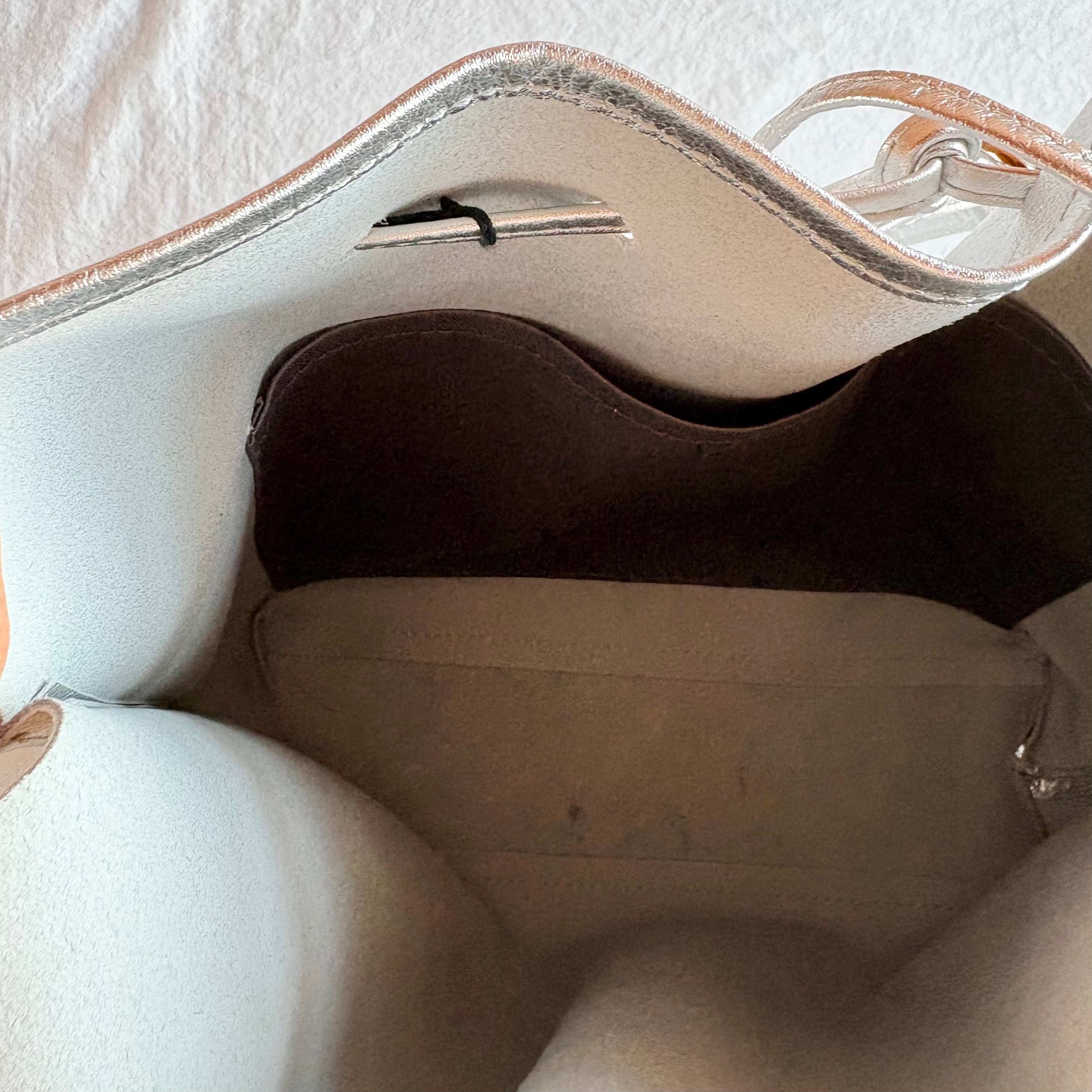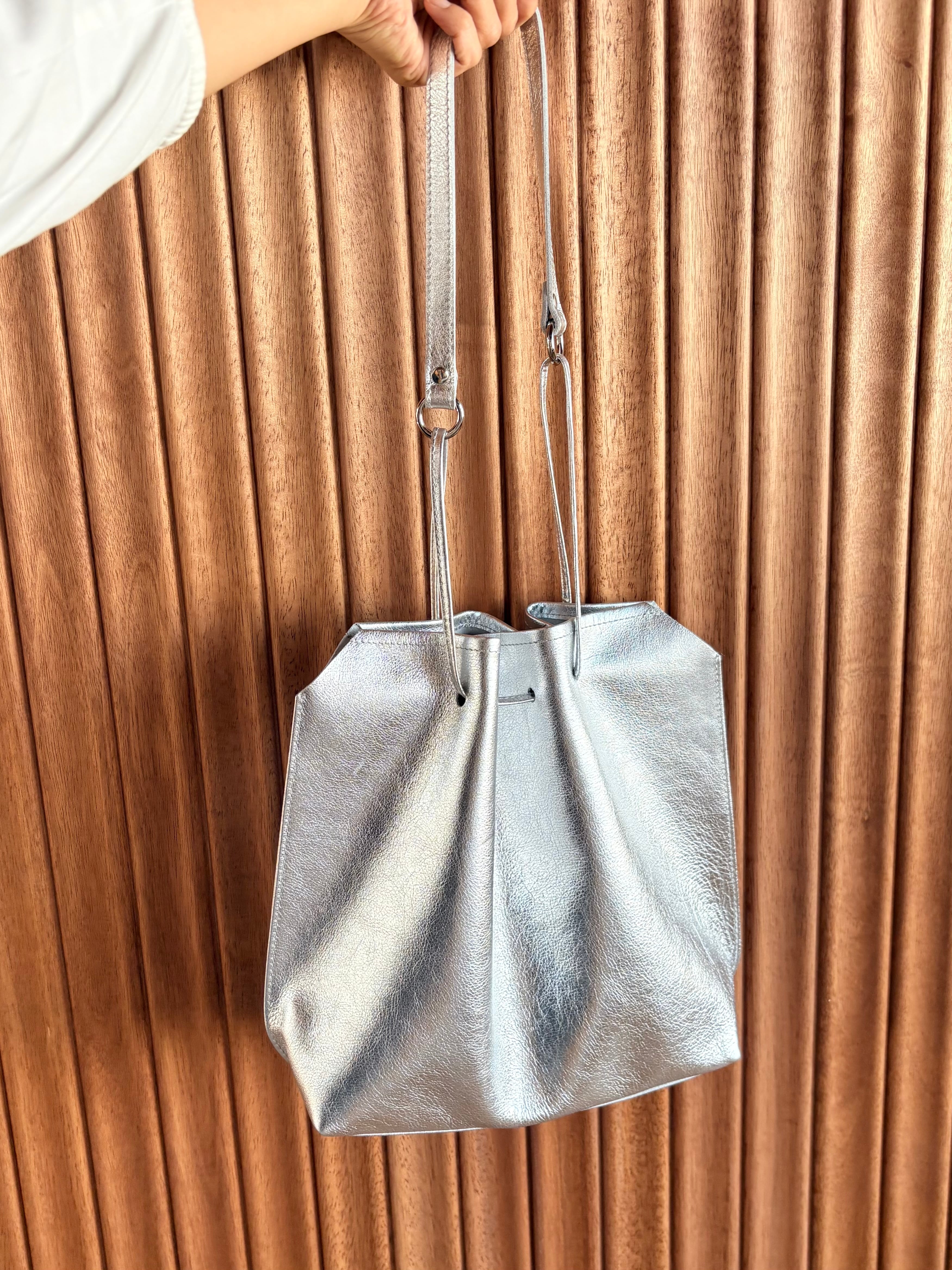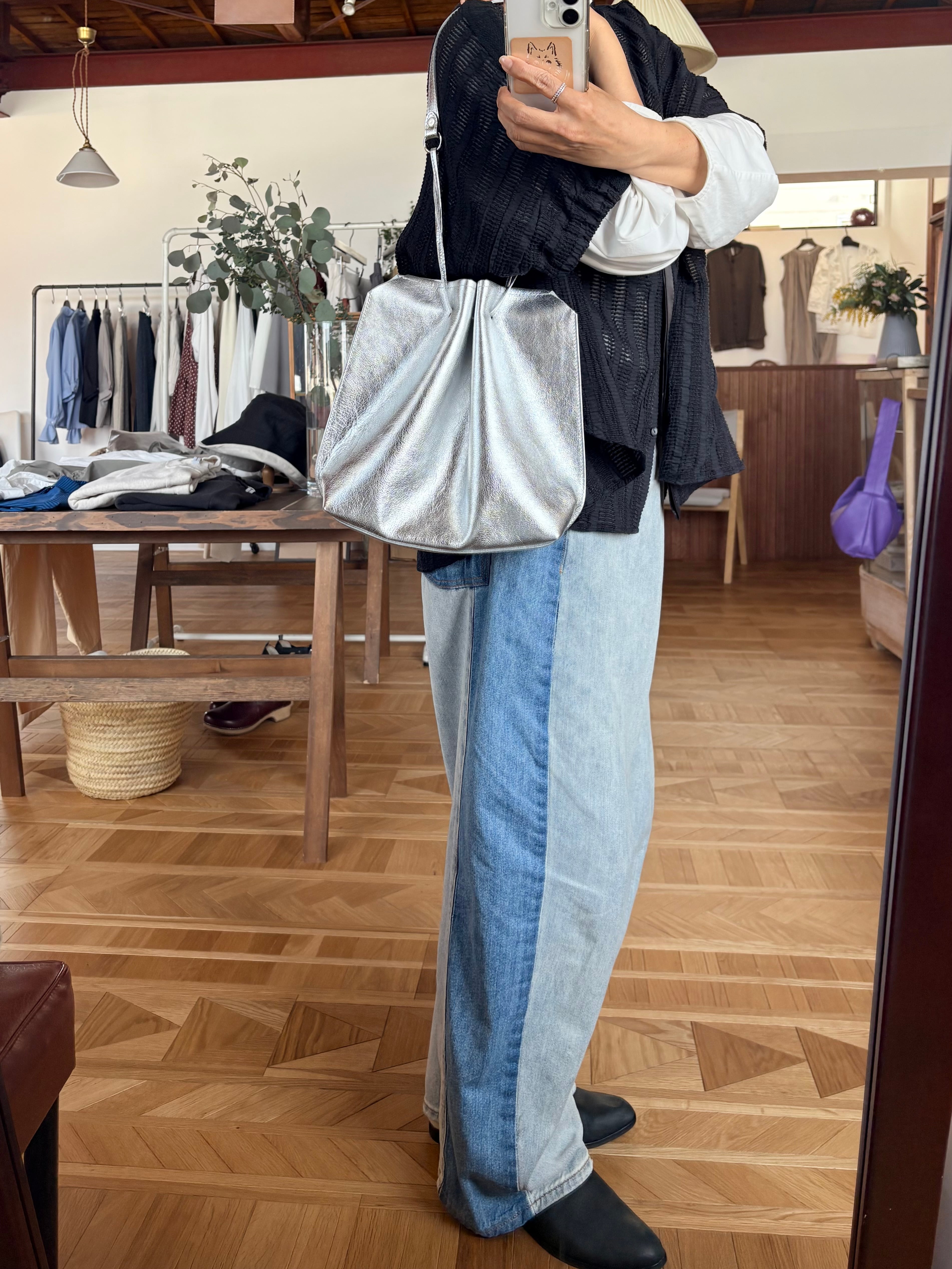 自然なドレープを生み出す巾着型ショルダーバッグです。
