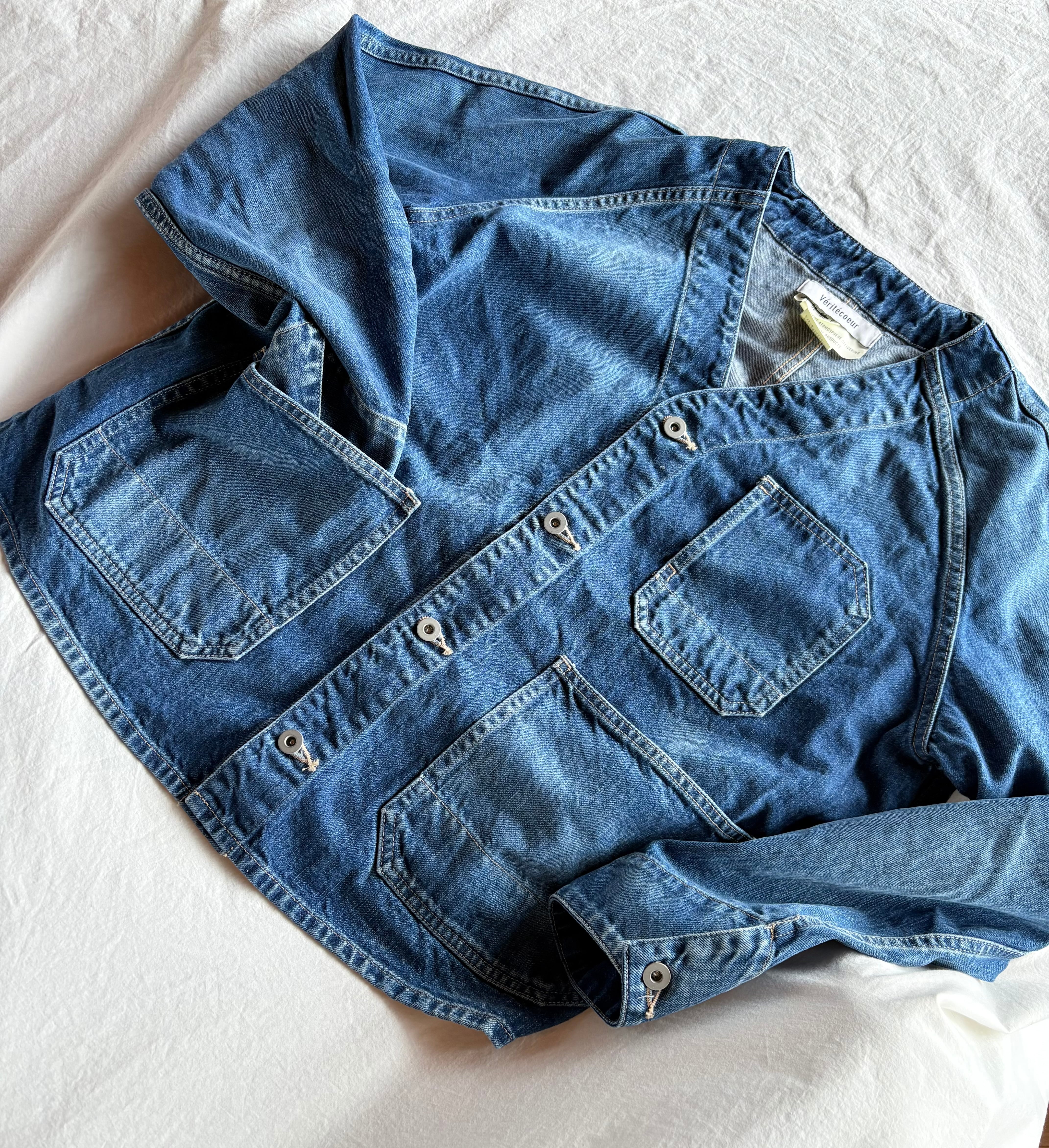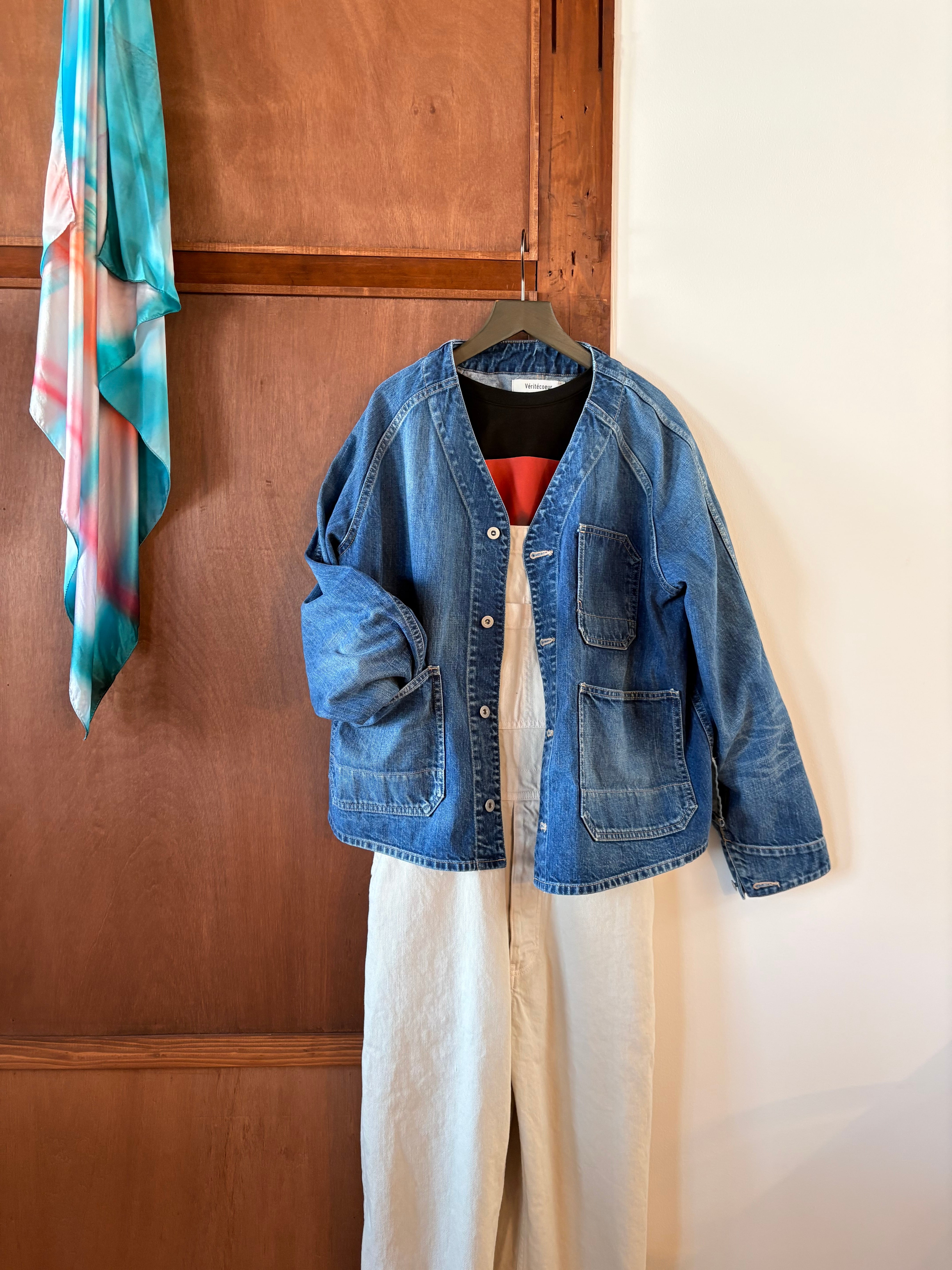 カーディガンのように、サッと気軽に羽織ることのできるデニムジャケット。