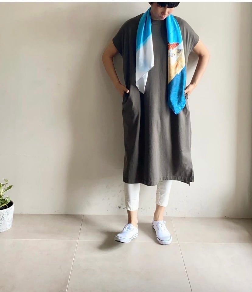 裾のスリットがアクセントかつ動きやすさも兼備。