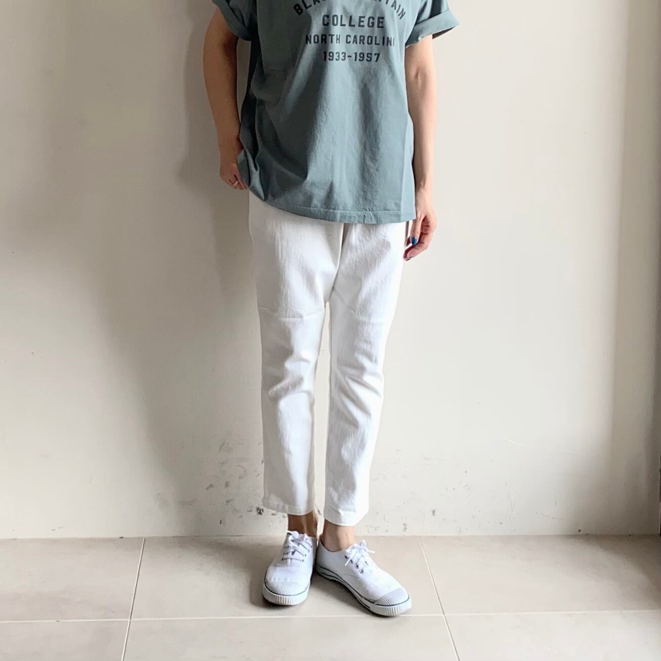 腰回りはラインを拾いにくい、股上深め幅もゆったりシルエットです。