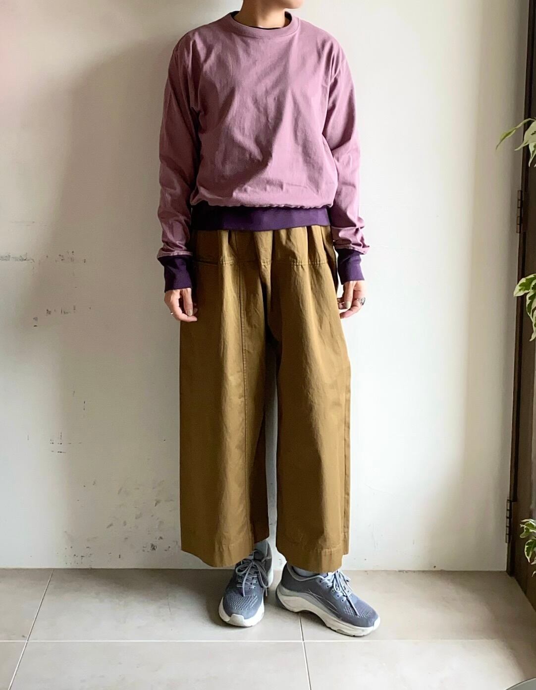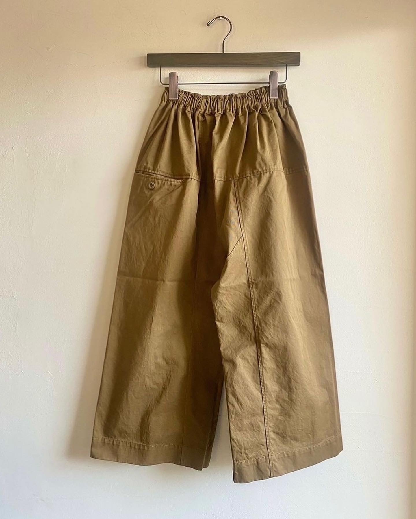 ヒップ周りに横に切り替えがあり、ゆったりした股上を抑える事でスッキリ見えるバランスです。