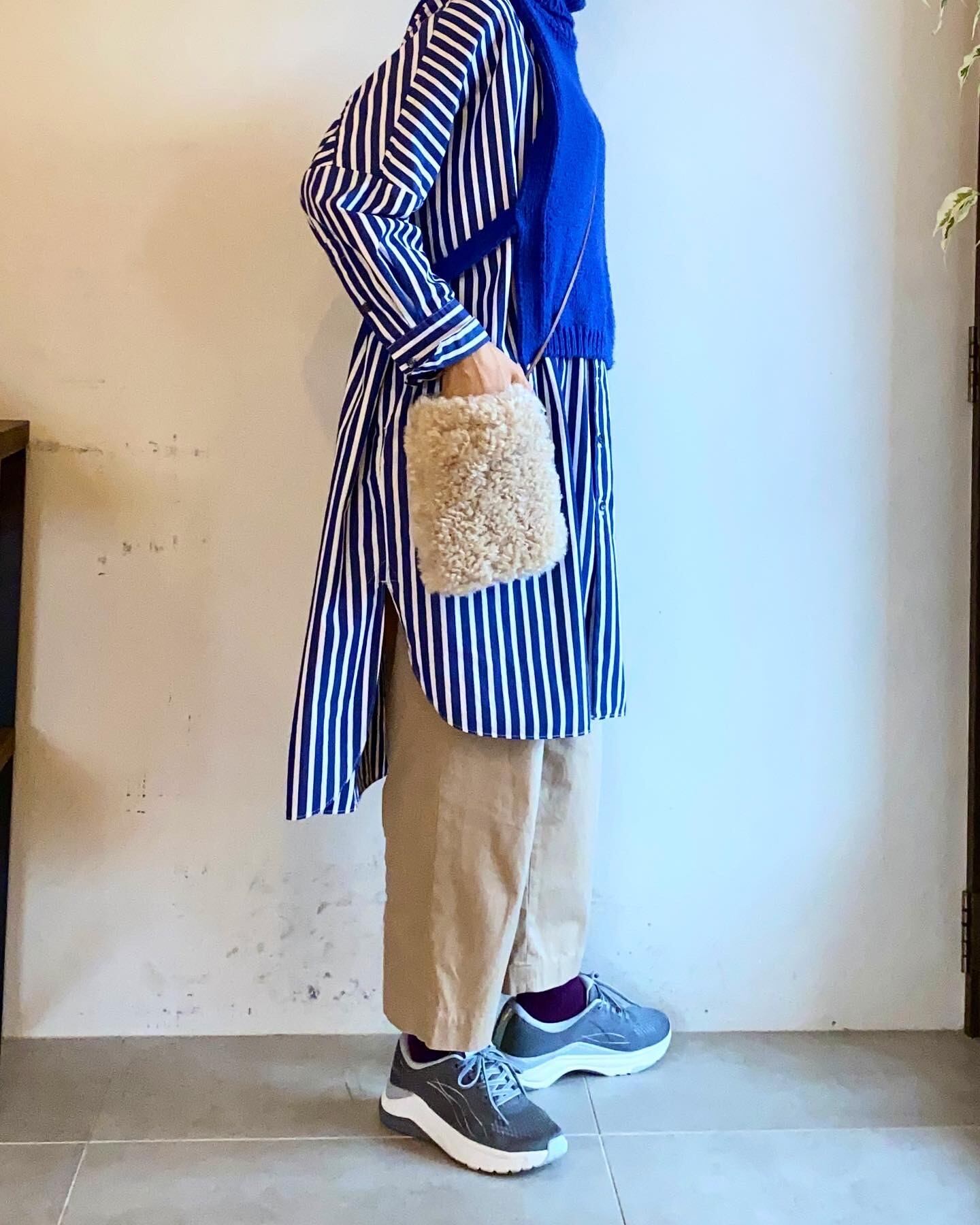レザーのショルダーストラップが上品でコーディネートポイントになります。