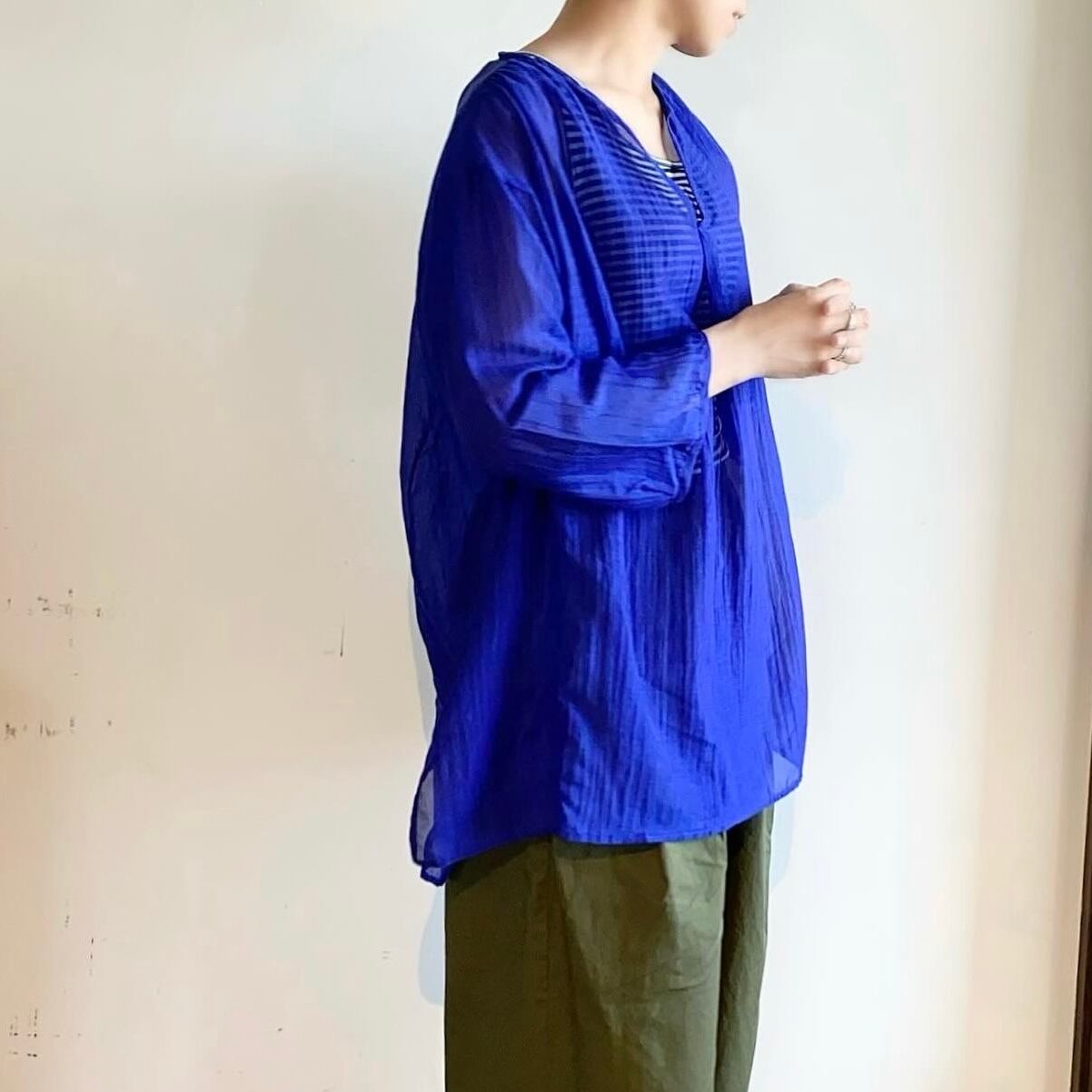 生地から縫製までインドにて製作された、ほどよく透け感あるコットン素材にシルク混合トップスです。