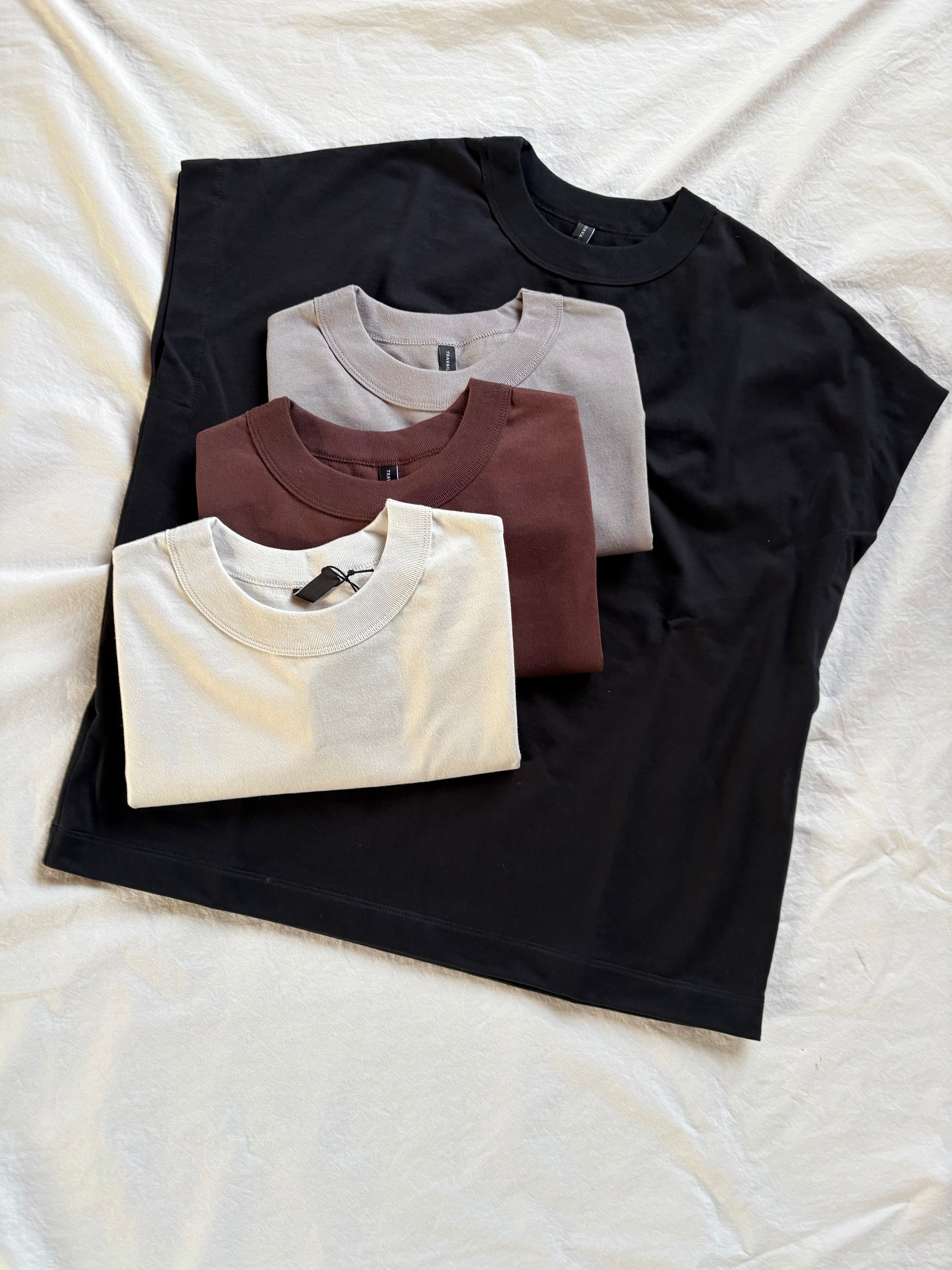 コーディネートにも、bottomsワイドからスリムまで選ばず幅広く合わせやすいTeeです。