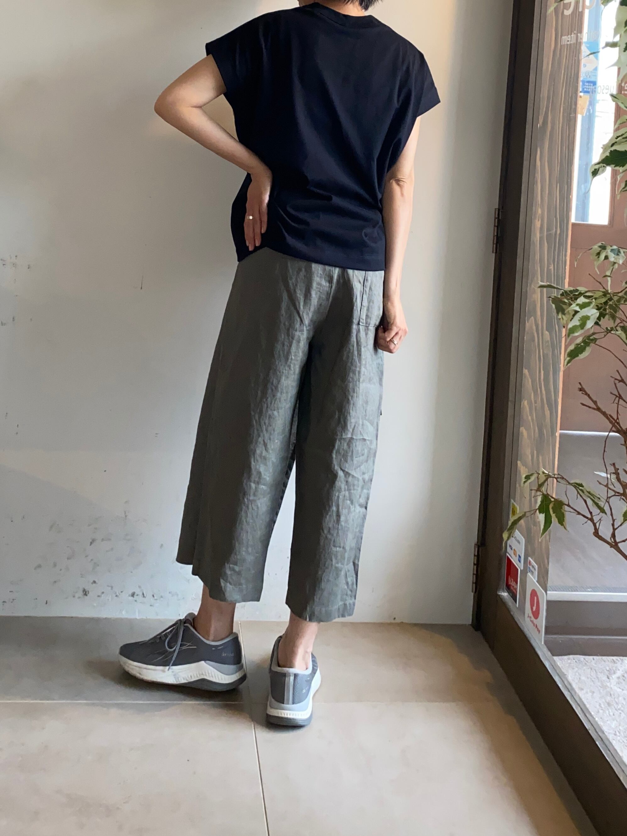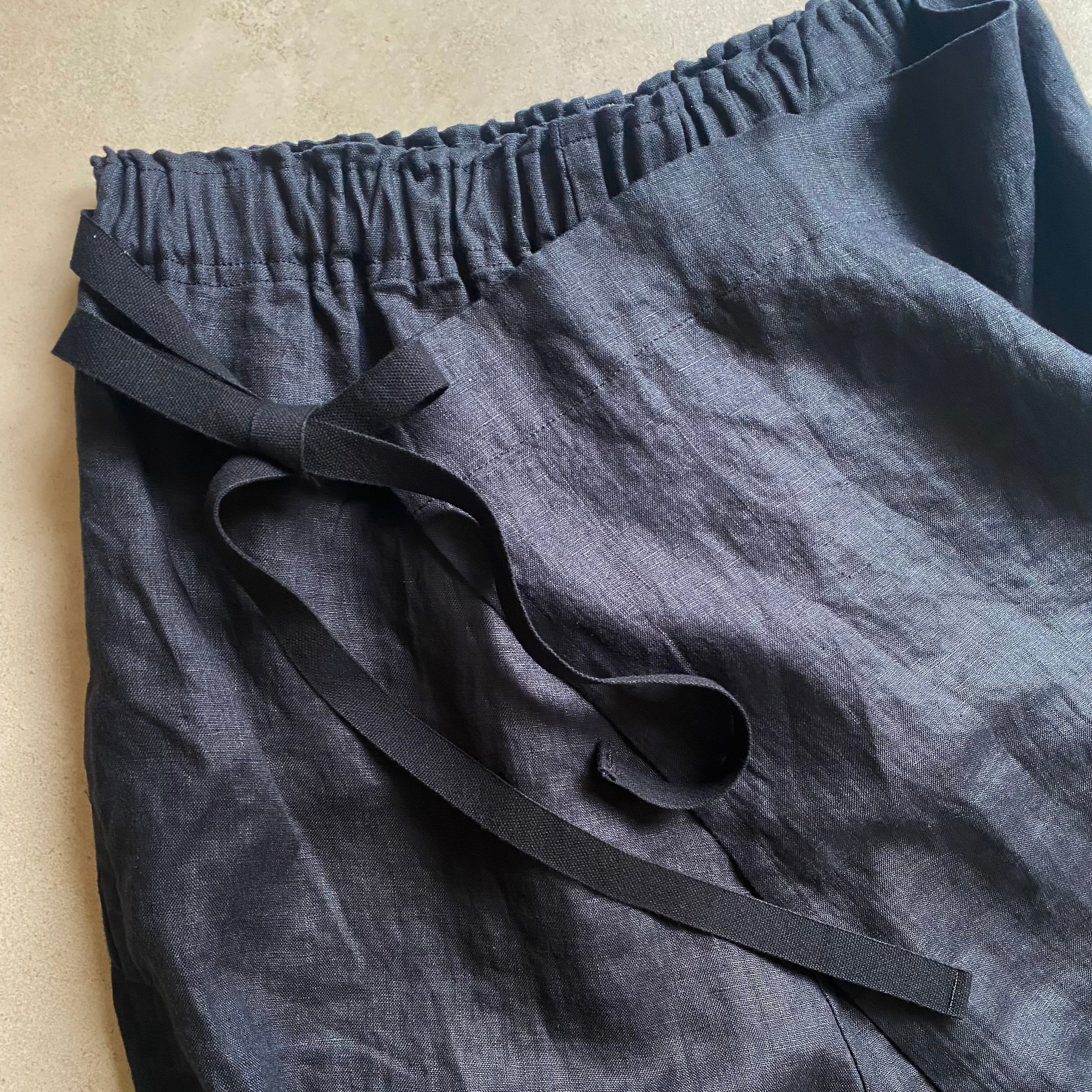 柔らかなリネンの風合いを生かしました。洗い晒しで穿いて頂けます。